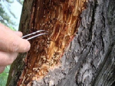 发现白蚁后,市绿化养护管理处工作人员立刻联络白蚁防治中心,随后,天河灭治白蚁所的防治小组赶到现场,在碎屑尘土中找到了一只兵蚁,确认这种白蚁是散白蚁,同时还在古银杏西边发现白蚁蚁道。